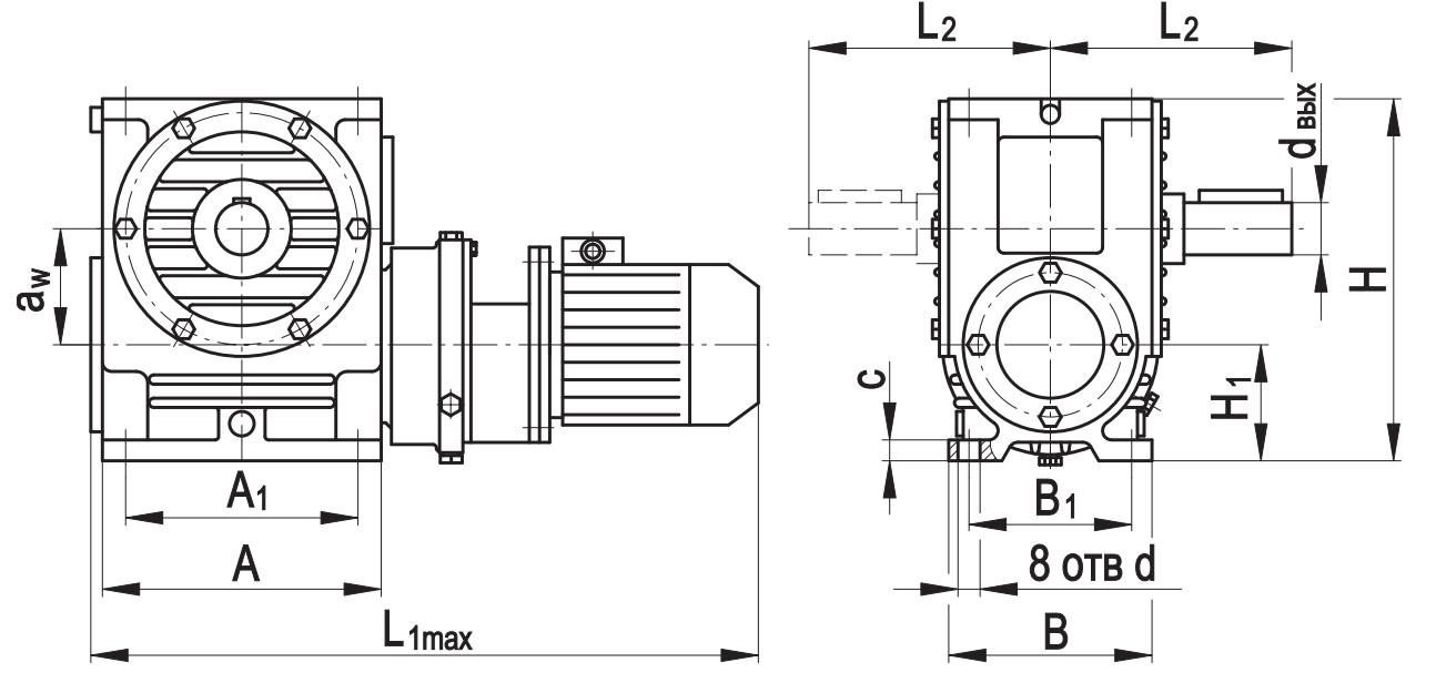 aw А А1 В В2 L L1мах L2 Н Н1 с d dвх dвых