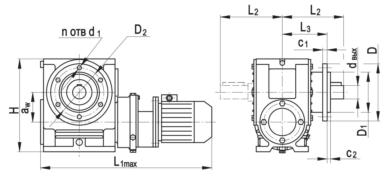 aw D D1 D2 Н L L1max L2 L3 С1 С2 d1 dвх dвых