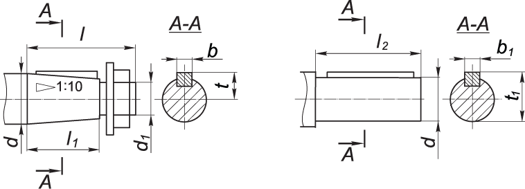 Присоединительные размеры тихоходного вала редукторов Ч2-100 – Ч2-160 (2 варианта)