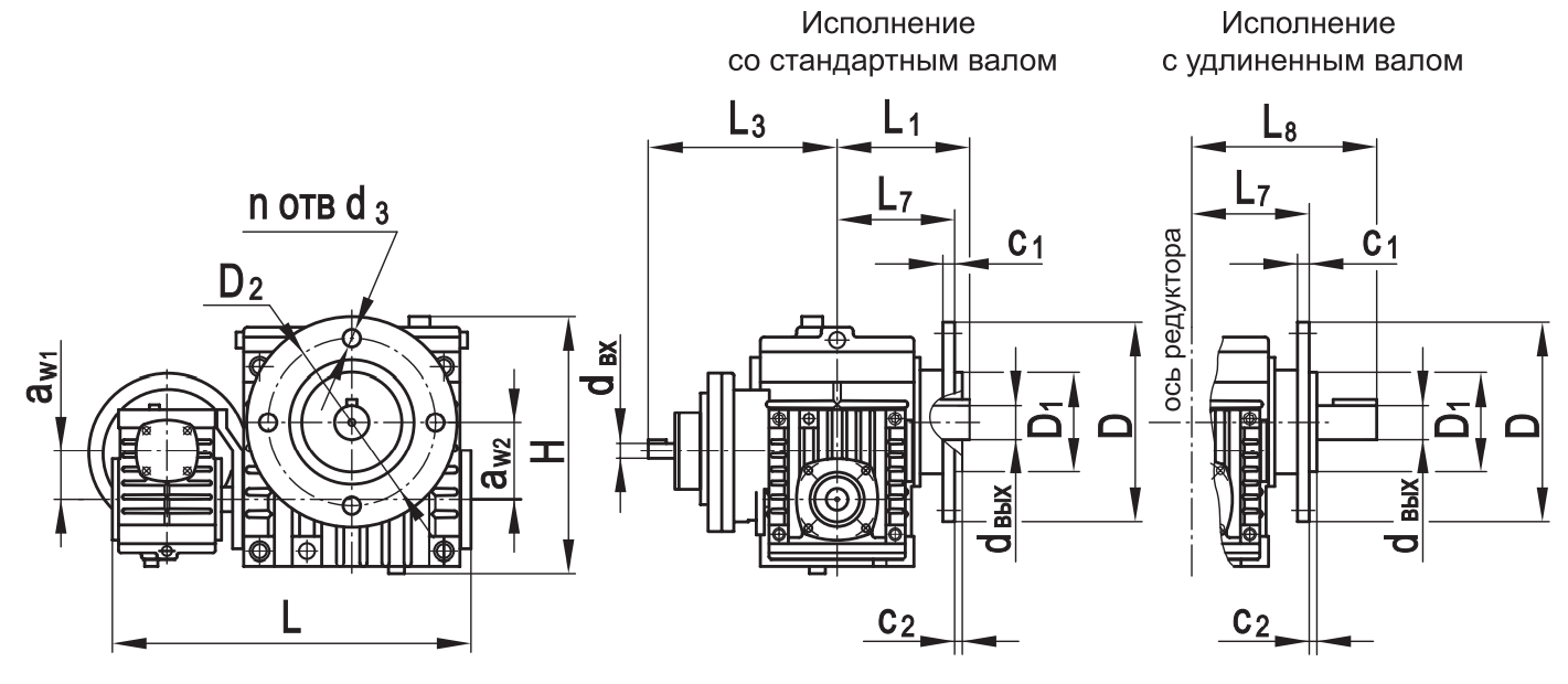 Типоразмер аW1 аW2 D D1 D2 H L1* L2max L3* L5 L7 L8* c1 с2 d3 dвх dвых n