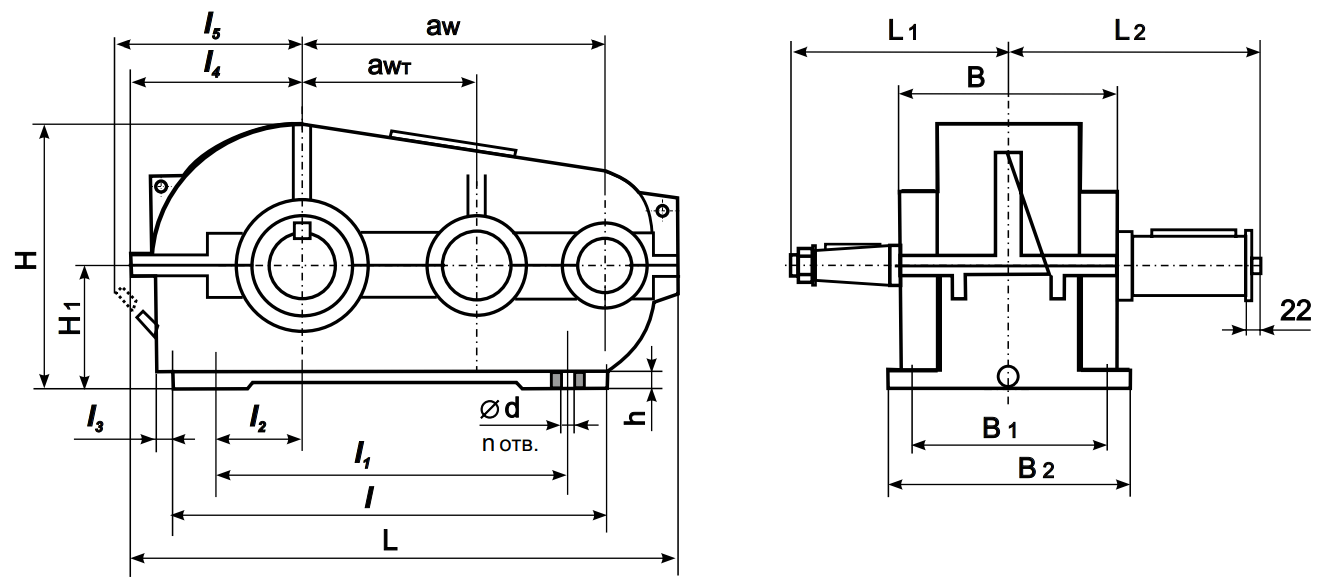 B B1 B2 H H1 h d n отв.
