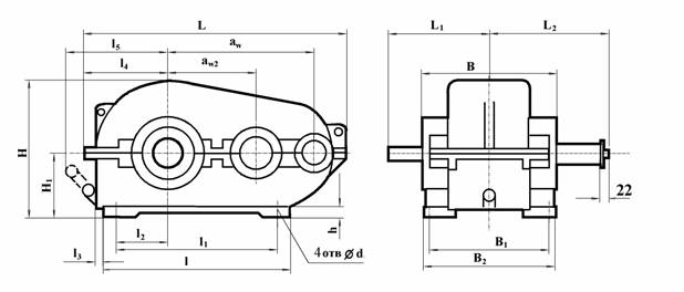Тип aw aw2 L L1 L2 l l1 l2 l3 l4 l5 B B1 B2 H H1 h d Масса